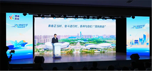 在“泰州日”青年人才“留泰”專線活動南京理工大學泰州科技學院的“‘泰’想留住你”城市推介會上,姜冬冬表示,同為“95后”的泰州,充滿了和大家“青春長相伴”的美好回憶,飽含“泰想留住你”的美好期待。泰想留住你,我們的相遇是“青春同框”。正是有大家的到來和參與,讓泰州躋身“中國最佳引才城市”,穩居“中國最具幸福感城市”。泰想留住你,我們的攜手是“正逢其時”。風華正茂的“活力泰”,正迎來了發展的黃金期,成為長三角發展最快的城市之一。青春正當時、奮斗進行時,與大家的“雙向奔赴”,必定不負時代、不負韶華。泰想留住你,我們的征途是“大海新晨”。新征程上,泰州正全力構建以“大海新晨”為標志的現代化產業體系。只要留泰就業、留泰創業、留泰生活,泰州永遠是大家奮進加油的站臺、奮勇向上的平臺、奮斗出彩的舞臺。他希望,全市廣大青年要牢記習近平總書記的殷殷囑托,在強國建設、民族復興中展現青春風采、貢獻青春力量。