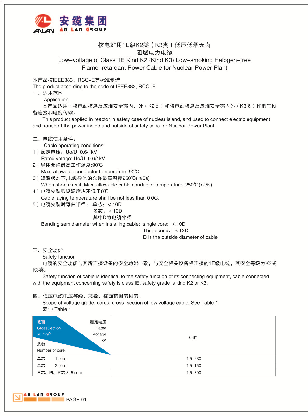 您所在的位置:首頁 > 產品中心 > 核電站用1E級K2類(K3類)低壓低煙無鹵阻燃電力電纜